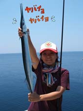 その後私はもりお〜に教えてもらいながらシジャーをゲット♪ かけてからのやりとりで、あんなに魚の動きをちゃんと見たのは初めてでした。 いつも魚が、かかると慌てて軽いパニックなので、頭真っ白でしたが、今回はもりおの解説付きで 落ち着いて見れました。シジャーはリアクションがいいな〜と思いました。 そのあとはみんなヒットなしで帰宅しました。 いろいろ勉強できた2日間でした。 カツオのくだりとてもワクワクしました。私もいつの日かそんなめにあいたい♪ 「神様釣らして下さい」な魚と出会えますように♪ |