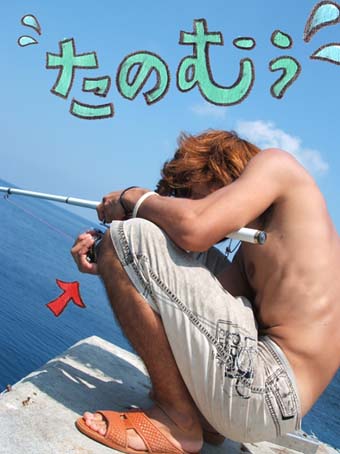 ミーバイを釣った後、私は仮眠をとりました。その間にも何回かアタリはあったようですが、 切られたりしてゲットならず。(大物だったかも♪) 朝方から人も増えてきてフカセにチェンジ。 朝になり海の中が見えるようになると、オジサンの集団やオヤビッチャーの群れがいっぱい いるのが分かりました。「うひょ〜もしかして入れ食いかぁ〜」なんてテンション上がったところ、 さらに続々といろいろな種類の魚がお目見え♪ モンガラやガーラの泳ぐ姿が見れたり、トカジャーやアーガイ、ヤマトミジュンの群れや グルクンも表れて楽しさいっぱい♪その他にもウミガメやエイも♪ 「さてオジサンでもゲットするか」なんて余裕思考。 ……しかしお昼過ぎまでオジサンどころか何も釣れん…「すいません、調子に乗りました」 なんて心の中でへこんでいるところ、ともたぁやもりお〜はグルクンなどゲット、 それを早速切り身にしてエサに。 他の釣りさぁたちもアーガイやらなんやらをゲット♪ あまりに釣れないので1時間程ふて寝した後、釣り場へ戻るとともた&もりおはハイテンションを 保ちながら釣りを続行中。その二人の横でたらしていると、なんとカツオ出現!結構でかい!! でもどうせまた釣れないんだろうな〜と、冷めた気持ちで見ている横で隣の二人は 釣る気満々! 「カツオ入ってきたっ!」 「オキアミ食べるかやぁ」 「食ってる!食ってる!オキアミ拾ってるっ!」 「食うぜ!食うぜ!絶対食う…食ったぁぁあああ」 ?…もりお〜の竿から聞き慣れない音が……!バチバチいいながら糸がすごい勢いで 出ていっている! カツオをかけたようだ!!上から見ると4kgぐらいありそうなカツオ♪ 一匹しかいないカツオ♪ しかもでかいし♪そんなのをかけてのもりおのやり取り♪ 空気かえてくれました♪ 久しぶりの興奮です ♪フレ♪フレ♪もりお♪ やりよるな〜♪凄い凄い♪とワクワクしながらカメラと汗を手に握りながら、糸が止まるのをまつ。 この時のもりおの竿はシマノBBX1.7号ハリス1.7号道糸2.5号150m。 150mの糸が凄い早さで出ていく!どんどんどんどん糸がなくなっていく! やまないバチバチという音! ?………止まった…しばしの静けさ… 「神様お願い!釣らせて!お願い!……走るなよぉ〜……走りそうだやぁ」 バチバチ!ギャアーまた走ったぁ〜! 「頼む!頼む!」 |